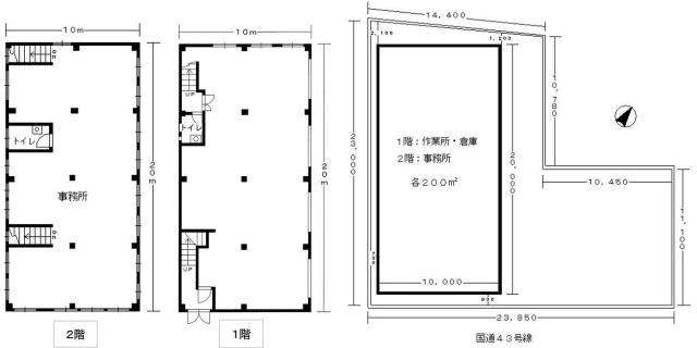 1階約200㎡2階200㎡
